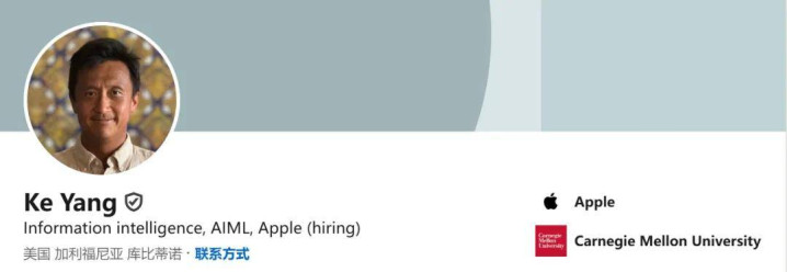 Ke Yang 本科毕业于清华大学,博士毕业于 CMU。他在 2019 年起就已在苹果任职,在加入苹果之前,曾在谷歌工作过相当长的一段时间。如今,他结束了在苹果长达六年的职业生涯,转投 Meta。