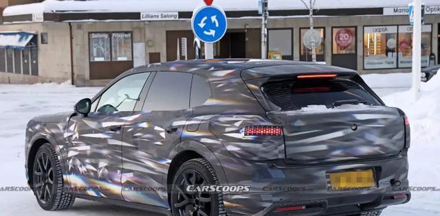 外观设计上,前大灯类似于天使翅膀的设计,造型独特,格栅预计是隐藏式设计,但可能保留轮廓,相比添越来说,有一些线条和细节的调整。